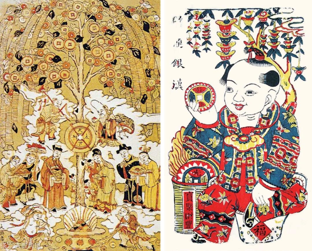 首先是对财文化重新挖掘。在延续铜钱纹品牌资产基础上,我们不仅通过色彩的变化和内容的变化对铜钱纹重新设计演绎,又在此基础上挖掘了一些中国古老的,受老百姓喜欢,富有故事性的财文化符号,比如摇钱树,钱龙引进,招财进宝等等。