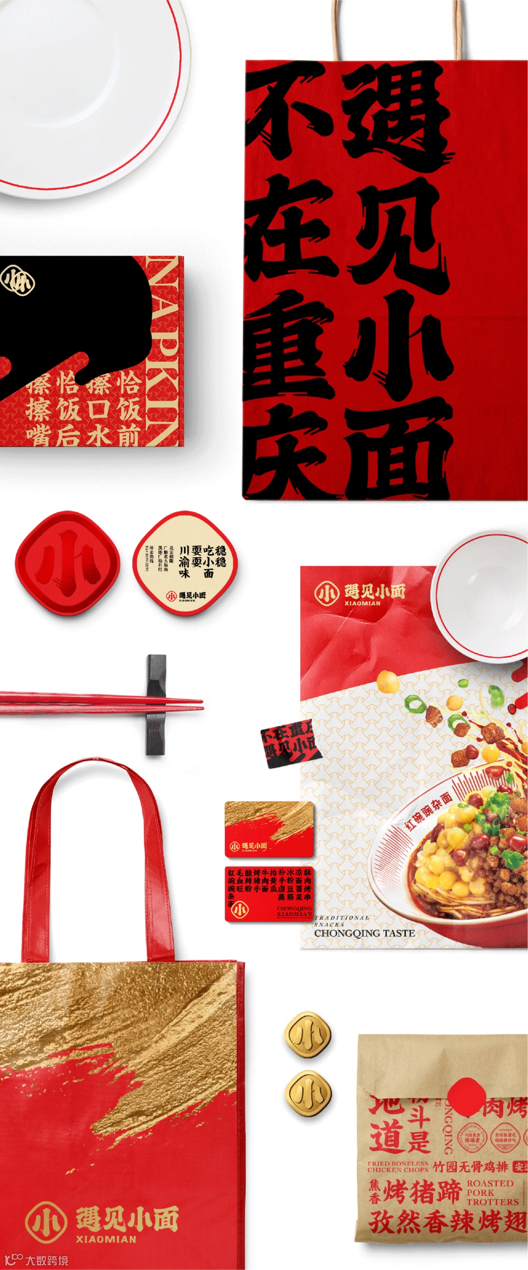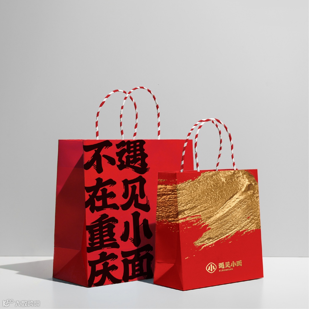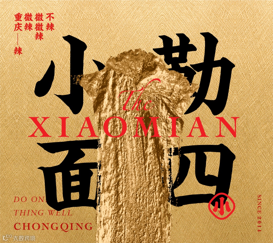 川渝文化赋予了遇见小面灵魂,为了传达遇见小面的气质精髓,我们将品牌的特征转化为“挥洒笔墨”的视觉元素。以川渝街头频繁可见传统书法字型为参考,将其以现代水墨笔触描绘,将英文进行统一,让全世界的人一眼就可辨识,肆意挥扬的笔势传递自由热情的川渝人情。