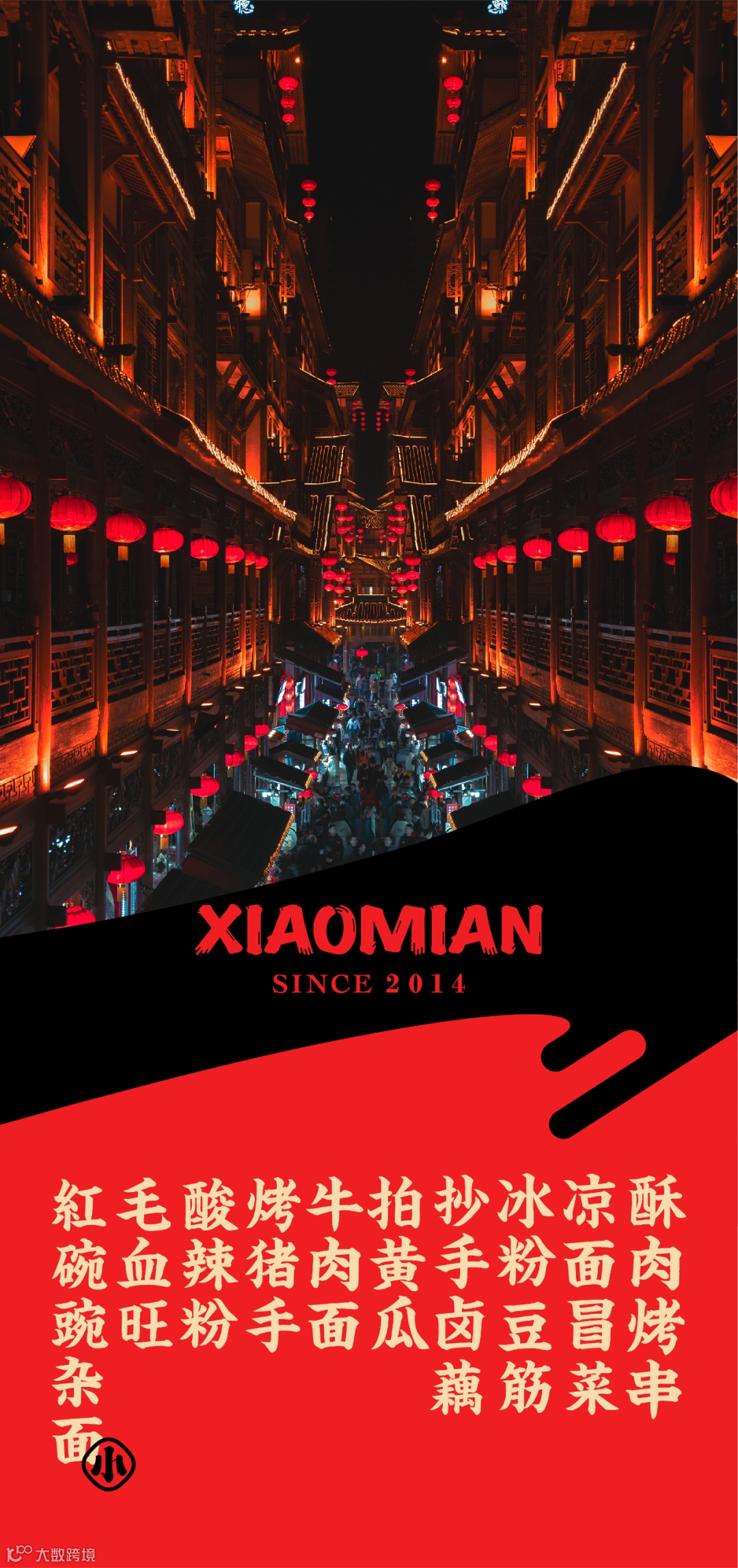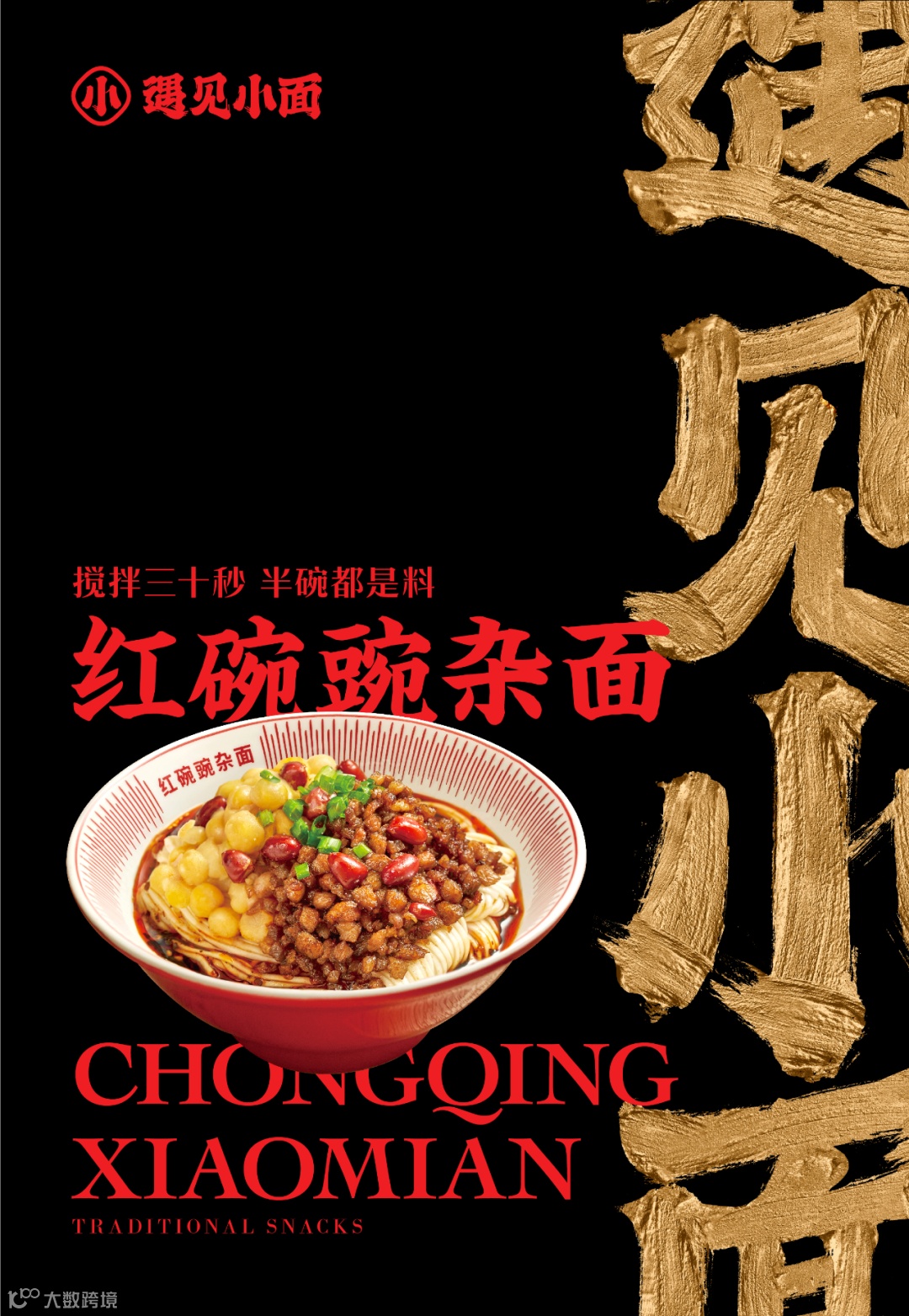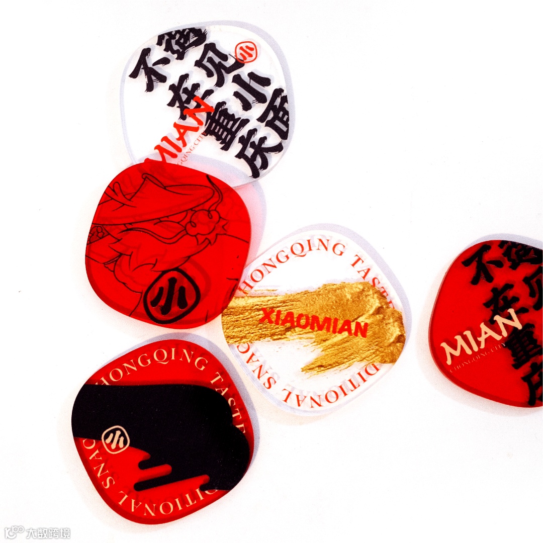 川渝文化赋予了遇见小面灵魂,为了传达遇见小面的气质精髓,我们将品牌的特征转化为“挥洒笔墨”的视觉元素。以川渝街头频繁可见传统书法字型为参考,将其以现代水墨笔触描绘,将英文进行统一,让全世界的人一眼就可辨识,肆意挥扬的笔势传递自由热情的川渝人情。