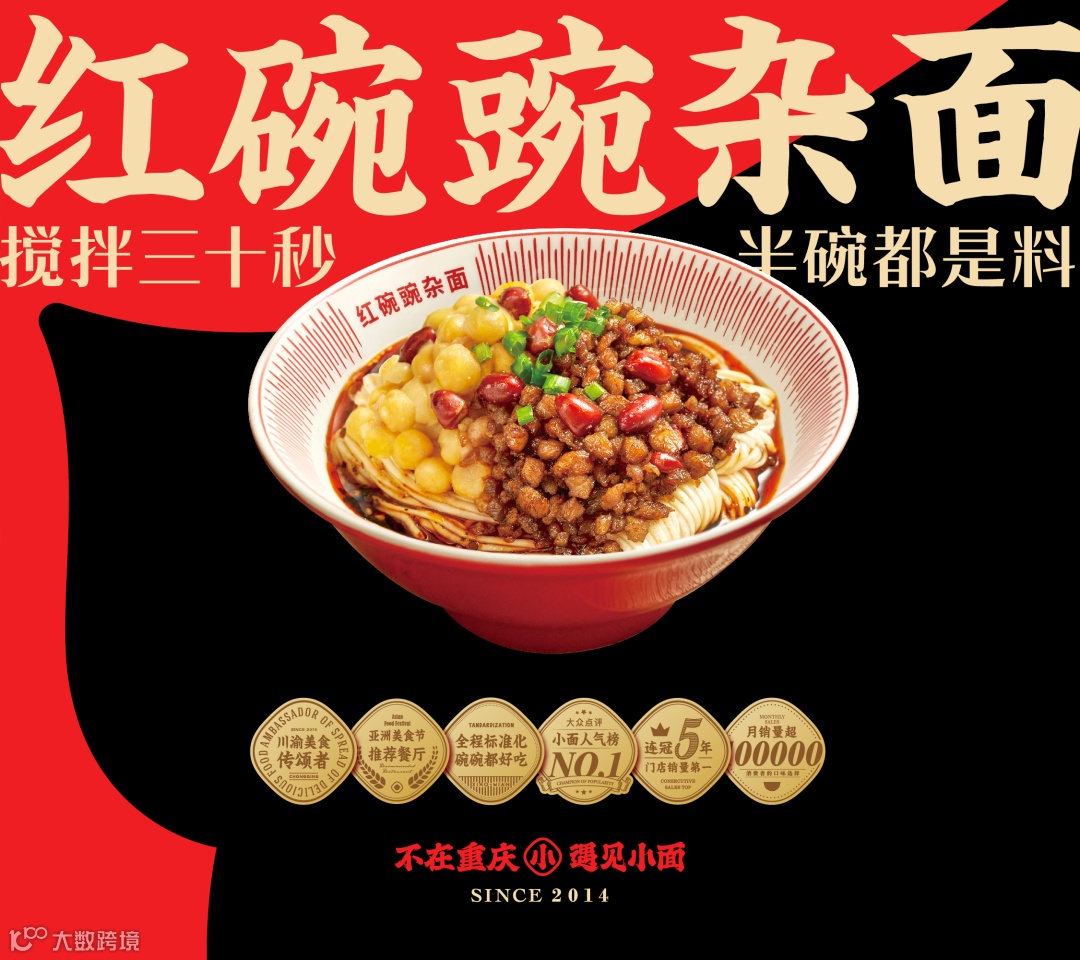 2014年遇见小面以口味独特的重庆小面切入餐饮市场,虽坚持标准化但却不丢失风味,不仅让原来不吃辣的广州人都爱上了这碗“重庆辣”,而且随着产品在全国市场不断的创新,从小面、现炒浇头面到酸辣粉、烤猪蹄,每一种味道都和川渝风味紧紧挂靠,这也让遇见小面从一开始就将“好吃”和“正宗”的基因注入到了品牌自身。