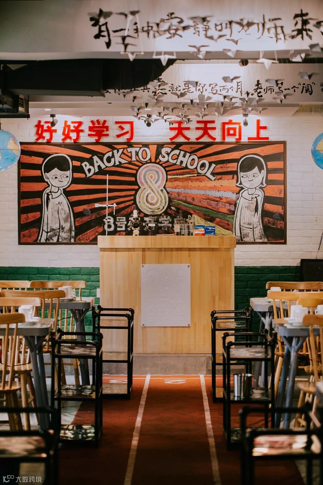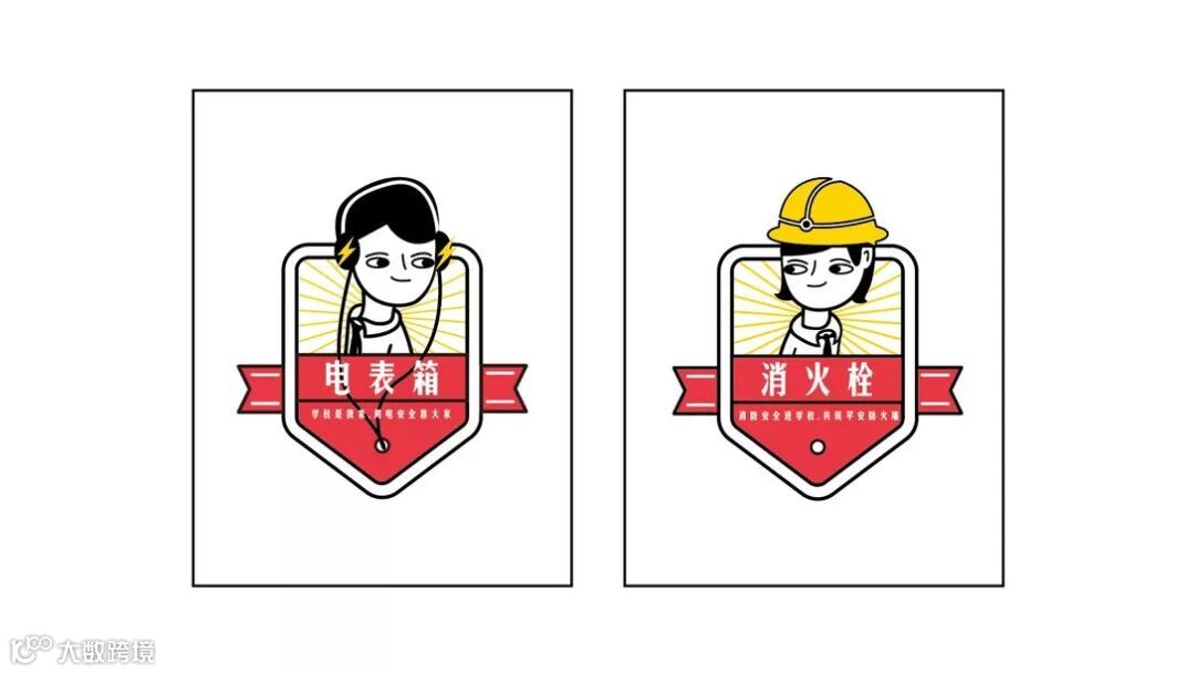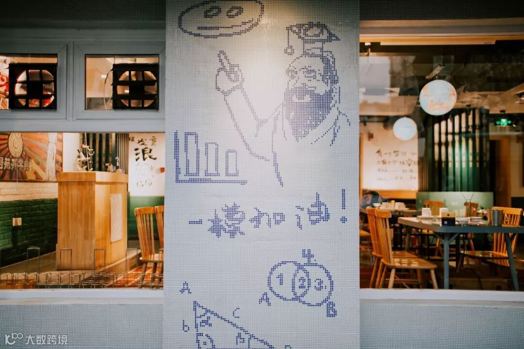 为了能让8号苑的形象鲜明,我们采用了以人物形象传递品牌形象的手法,并且将两个小学生的形象反复的应用在空间之中。