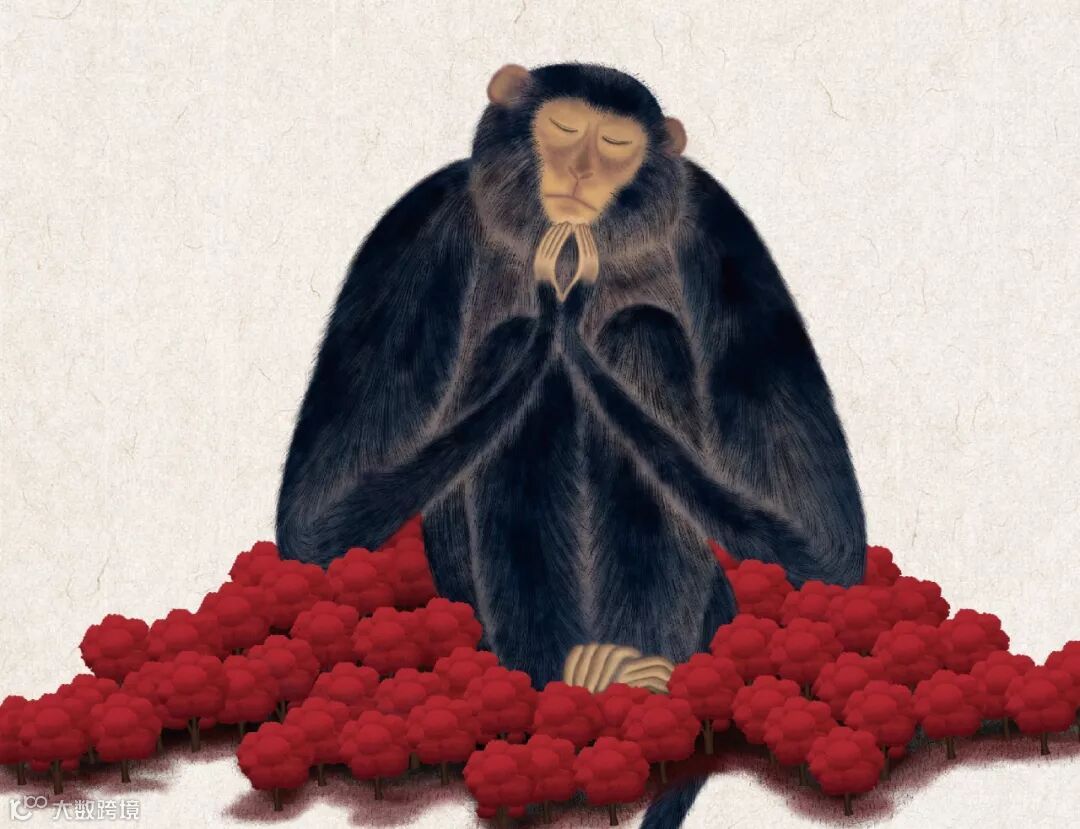 雨林里稀有的长臂猿在雨林产品“小方盒”组成的云彩上打坐冥想,双手合十,体悟茶禅。长臂猿即使原始雨林生态环境的佐证,也是中国禅茶一味的表达。喝雨林小方盒,不听不说不看,不急不忙不慌,从容有度,坐看云舒。