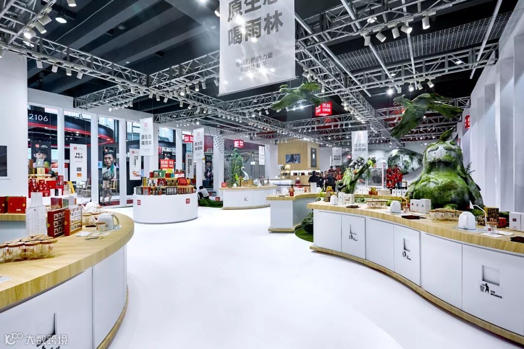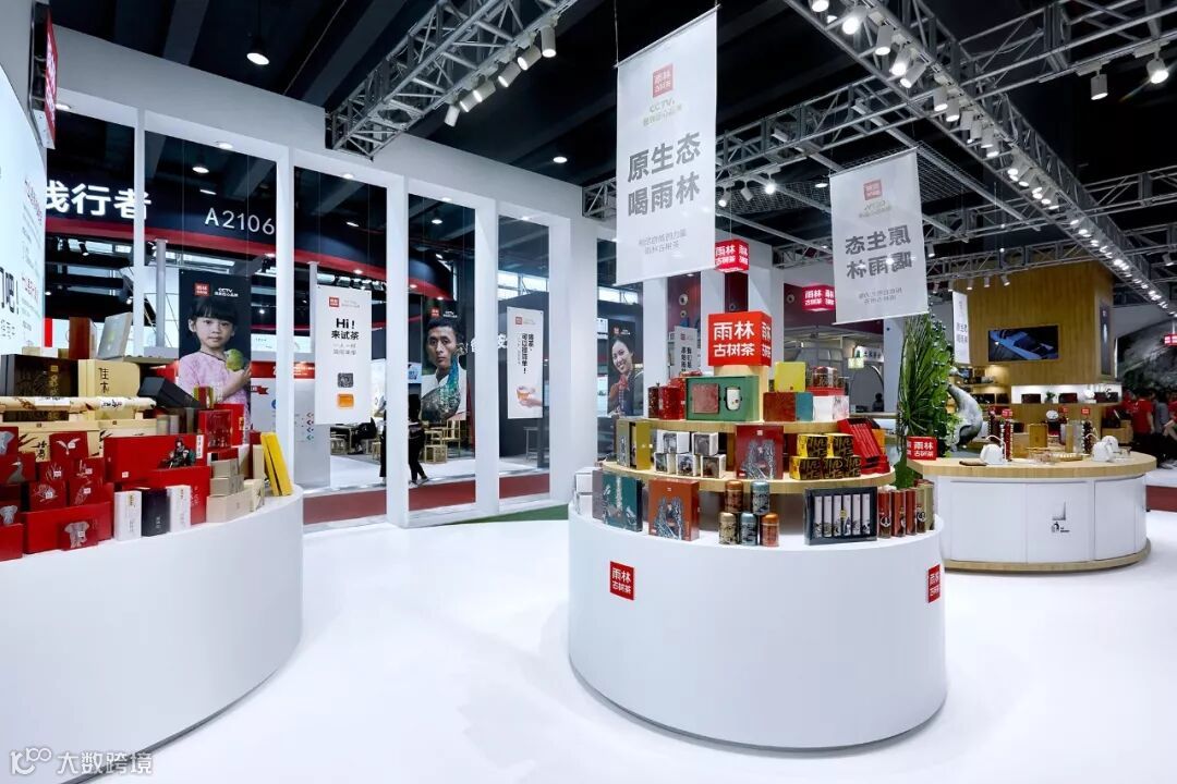 从 2016 年开始至今,雨林已经连续 3 年设计茶体验空间“茶立方”,仿榫卯结构的木格子“茶立方”,琳琅满目的产品阵列,自助冲泡的品饮体验,丰富多彩的品牌印象,持续三年,场场火爆。