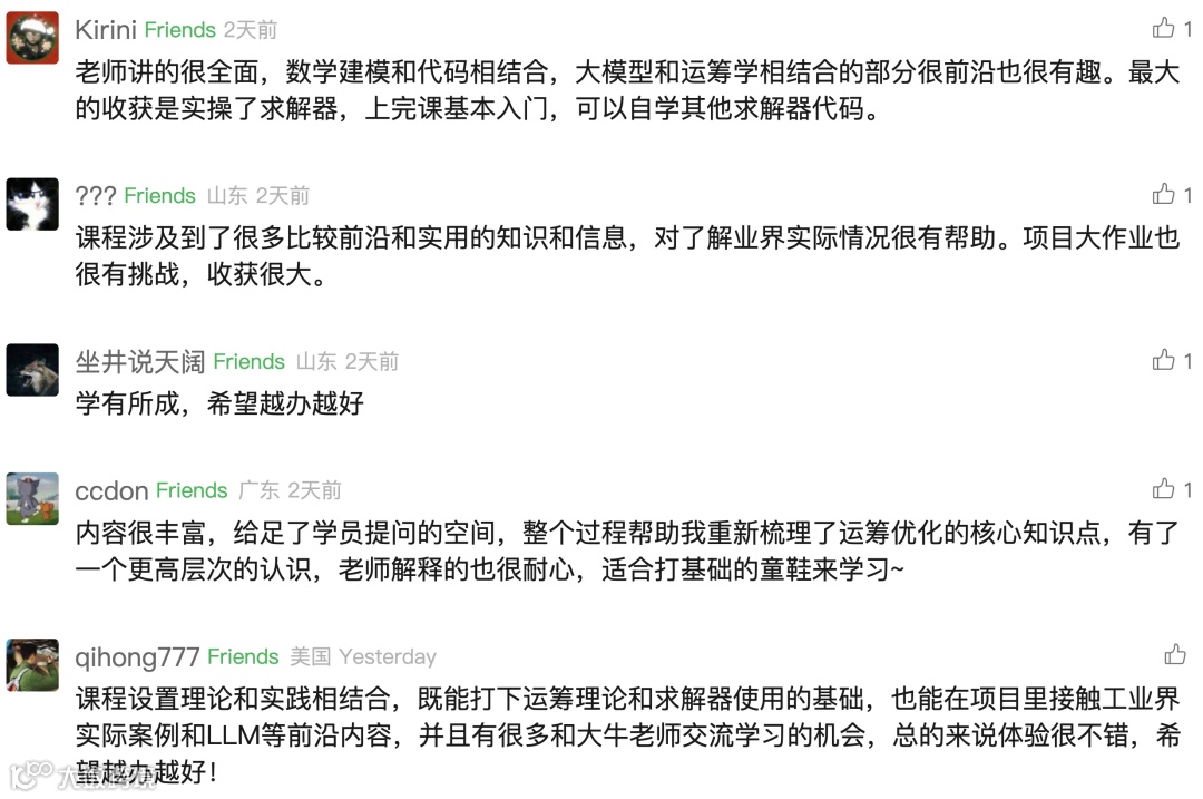 学以致用:将学习到的数学规划模型和求解器用于求解2-3个实际问题,包括经典的物流供应链和金融问题,大规模商品补货问题,以及火柴交友小程序的双向匹配问题。