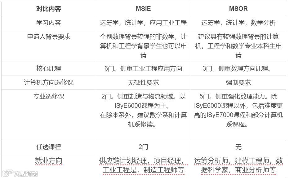 虽然都是运筹学相关项目,如下表3所示,佐治亚理工的工业工程和运筹学项目有以下几个不同之处。MSOR项目更侧重数理计算能力培养;MSIE项目更侧重应用,学生自由选择课程的空间更大,选课领域,在经过advisor批准的情况下,可以涉及佐治亚理工的各个院系和专业。在项目发展前景方面,两个项目都有进一步深造的机会,数理课程更多的MSOR更适合作为博士入学跳板项目。