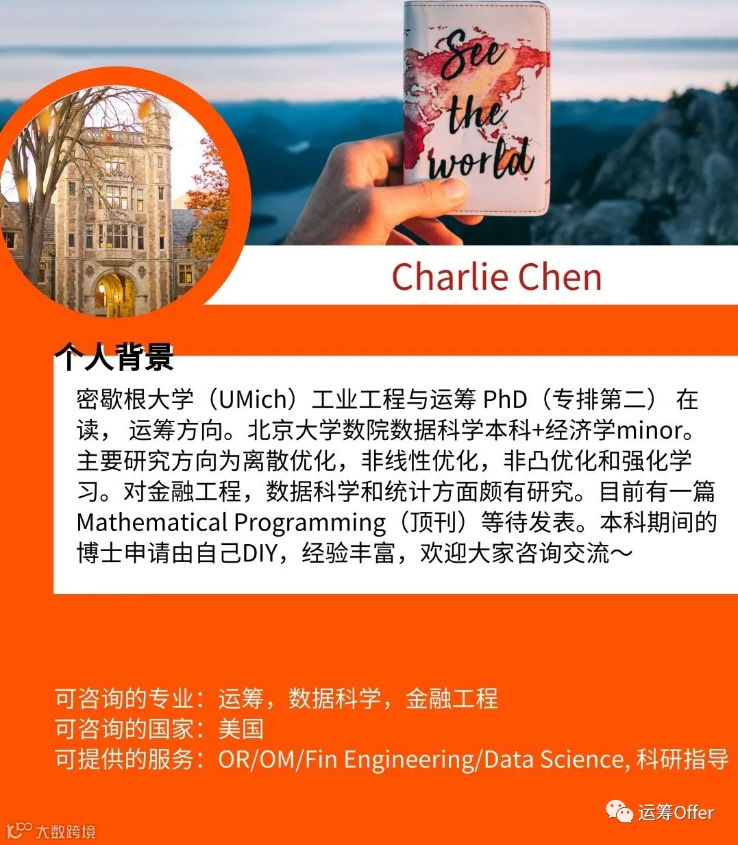 密歇根大学安娜堡分校的工业工程与运筹专业全美排名第二,拥有很好的教学和科研资源,而且我的导师是整个领域内都非常有名的学者。