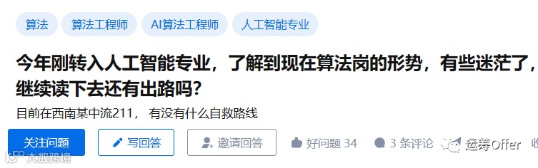 为啥大家会感到迷茫?相信更多的不是看到这个方向落地的现状而感到迷茫,更多的是从人才市场上直接的反馈而感到迷茫,为今年工作好不好找,钱多不多,能不能多拿几个offer相互抬身价而感到迷茫。