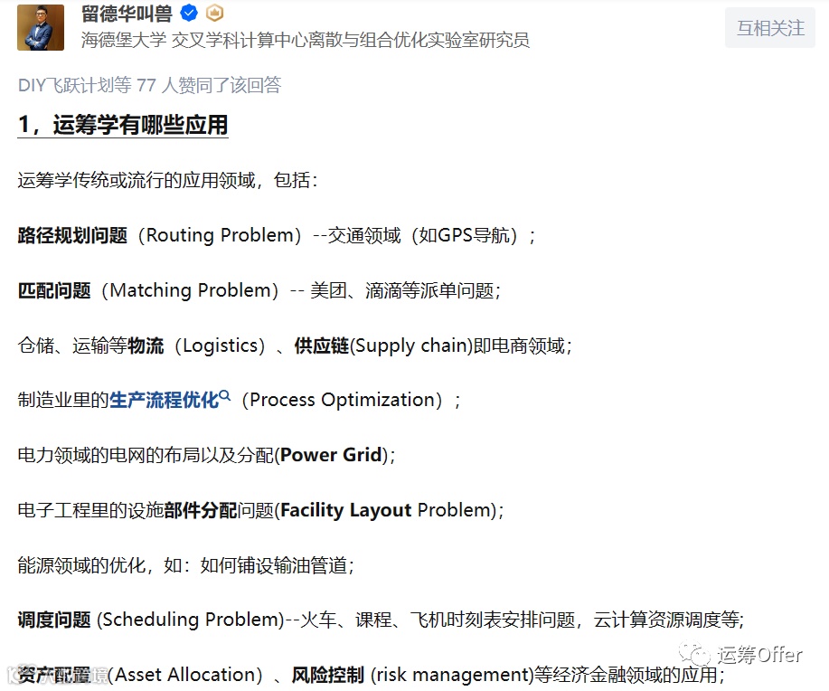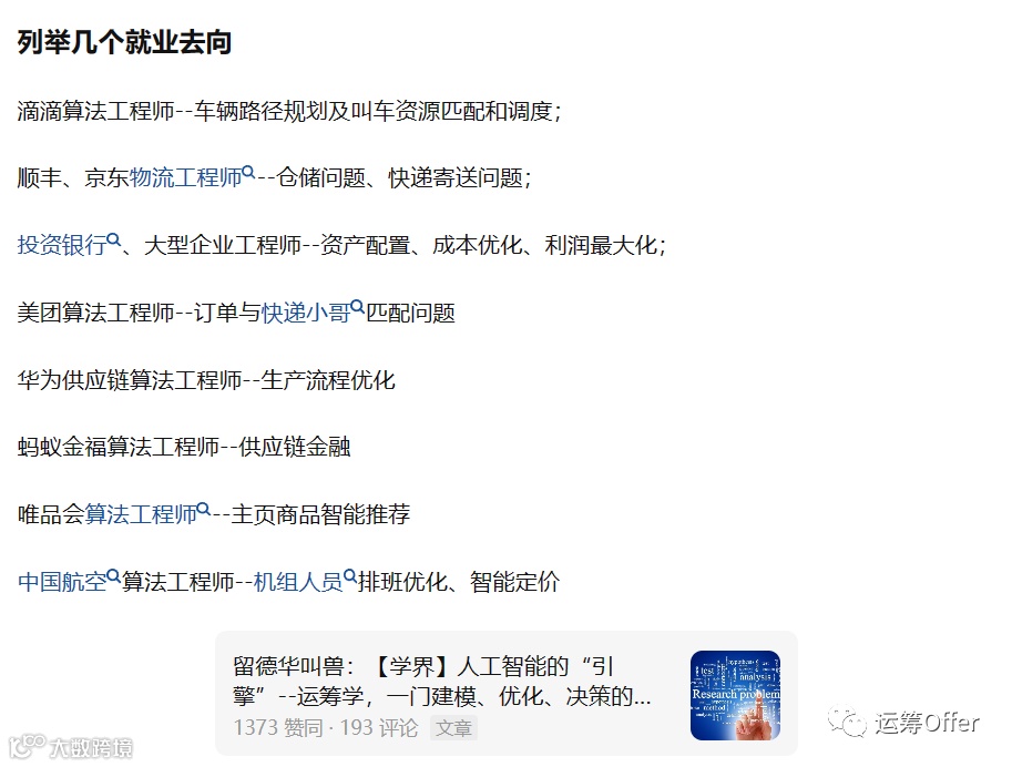 关于运筹学的应用及就业: