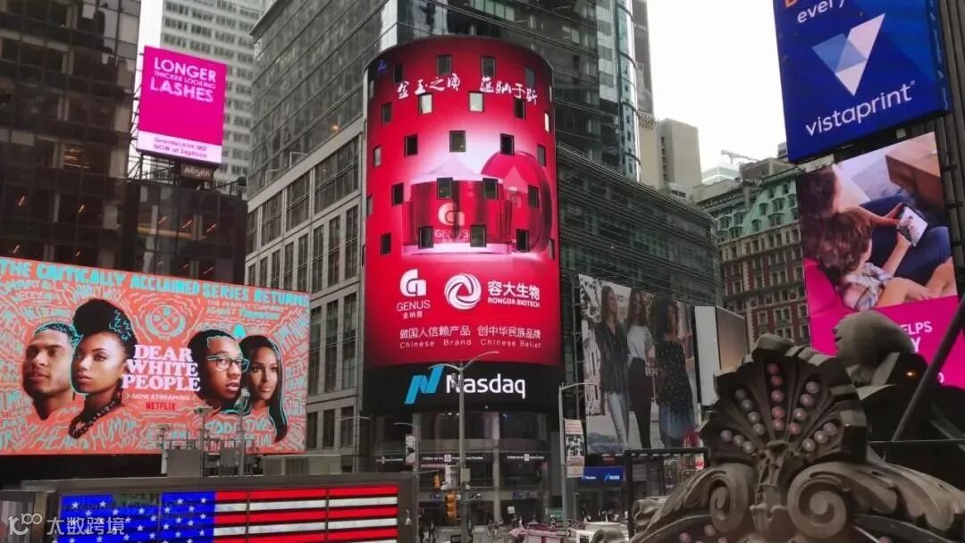5月,容大生物金纳斯在中国品牌日当天点亮了美国纽约时代广场纳斯达克大屏,在世界的十字路口彰显中国品牌的力量。