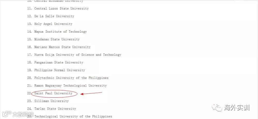 菲律宾圣保罗大学(Saint Paul University)是中国教育部留学认证并推荐的一所菲律宾综合性重点大学,是国际商学院组织亚洲分会(AASBI)认证的唯一一所菲律宾大学、亚洲国际学生交流组织(AIMS)12所菲律宾大学成员之一、世界高等教育学分互认项目组织(ETEEAP)成员之一,学校综合性排名位居菲律宾前十。