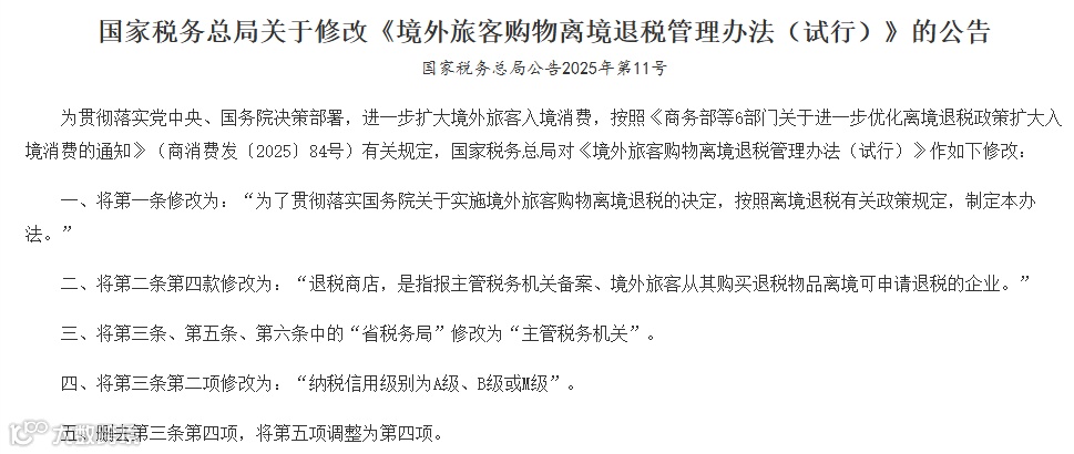 关于《国家税务总局关于修改〈境外旅客购物离境退税管理办法(试行)〉的公告》的解读