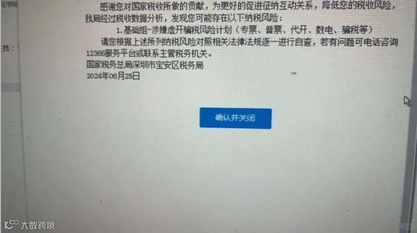 4.因一组发票怀疑涉嫌虚开被风险提示