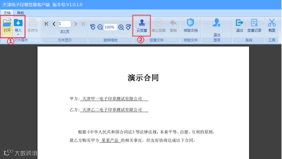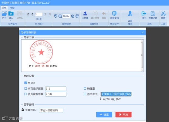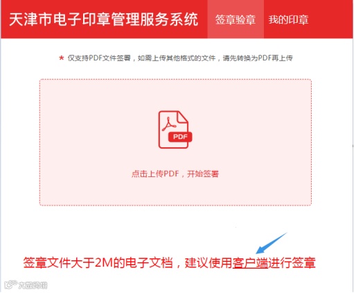 针对用户需加盖的电子文档较大,不方便上传至系统网站进行签署的情况,推出客户端签署方式,在用户本机进行签署。