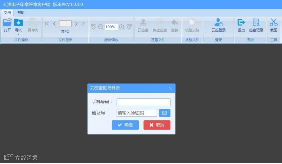 1. 打开天津电子印章签章客户端应用程序,点击上方的“云签登录”按钮,输入手机号验证码进行登录。