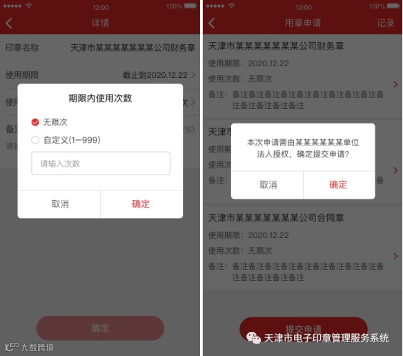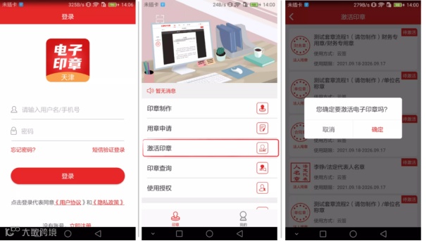 免费发放的电子印章,需通过天津电子印章App激活后,再进行使用。