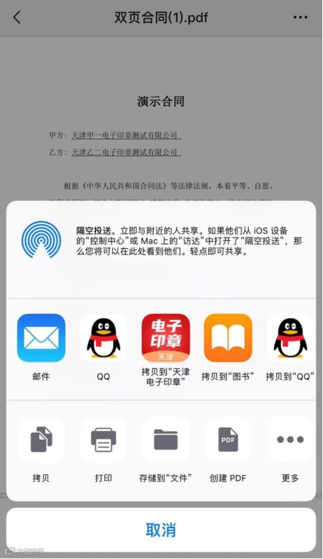 4. 完成签署,将文件通过微信等发送出去。