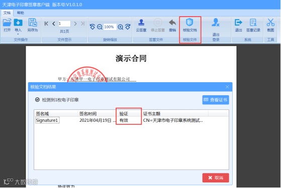1. 点击上方的“核验文档”按钮查看该文档是否有效。