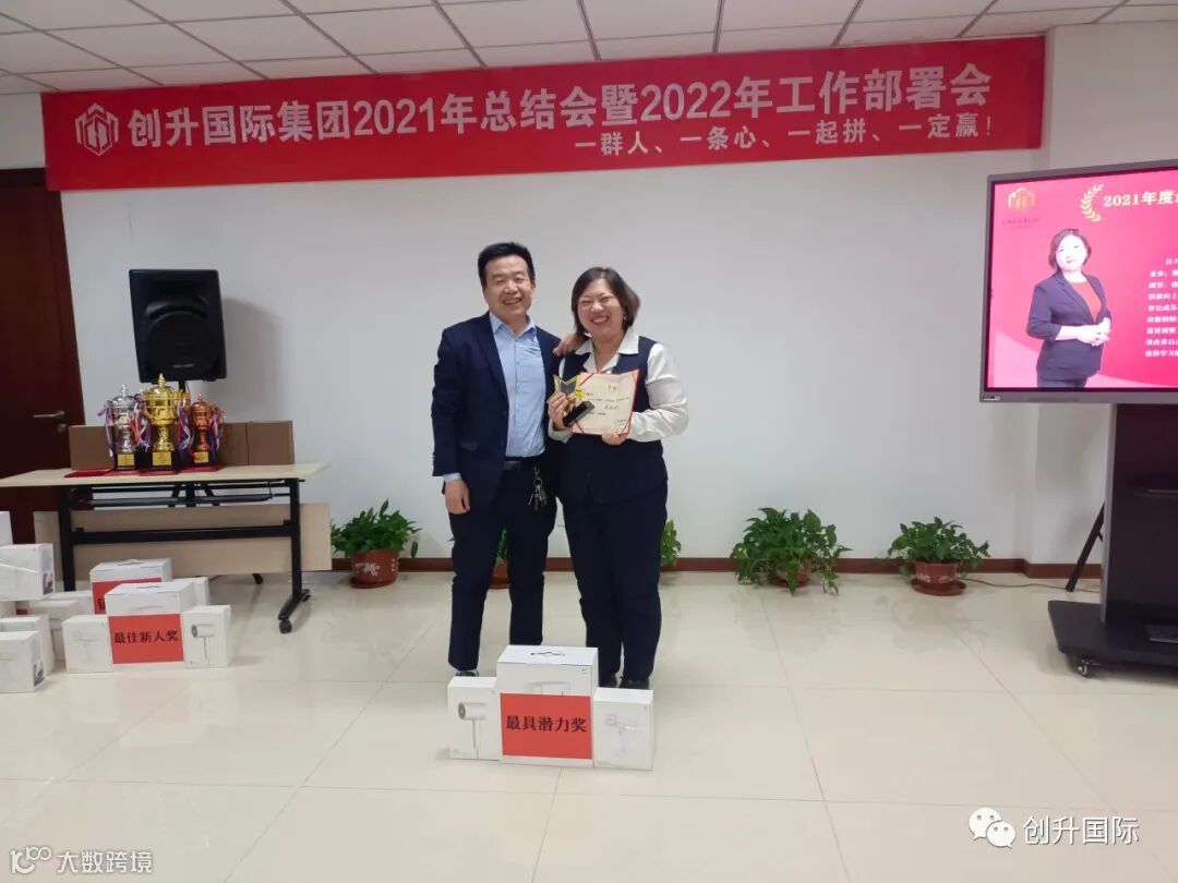 八年风雨同舟,倾情相伴,八年携手同行,初心不变!任晓玲女士指出了各部门的不足之处,对未来一年提出新的工作要求。同时,颁发了2021年度优秀员工奖,最具潜力奖,最佳新人奖,也对2021年度销售业绩前三名以及完成业绩目标的同事给予现金奖励。