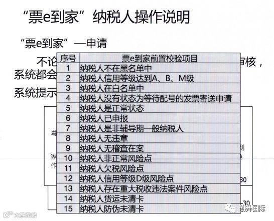 以前您在办理发票业务是否需要跑断腿、磨破嘴,真麻烦!!!现如今天津市税务局推出了“票e到家”的服务,以后用户只需要在家里动动手指,就能申领到增专、增普、电子票、机动车等16个常用票种,再也不需要费时费力的跑到办税服务厅办理申领发票业务。用户只需要登录天津市网上税务局,插入CA证书,进入票e到家,点击发票验旧模块,然后进入发票领用申请页面,输入相关信息,点击提交就可以了。票e到家提供365天全年无休服务,线上各系统实时自动处理,线下通过邮政EMS渠道寄递到领票人手中。