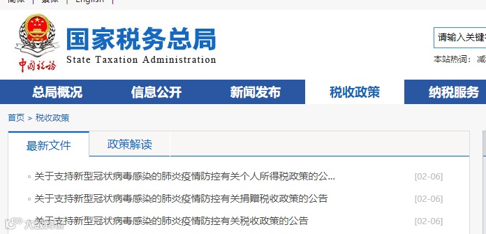 关于支持新型冠状病毒感染的肺炎疫情防控有关捐赠税收政策的公告