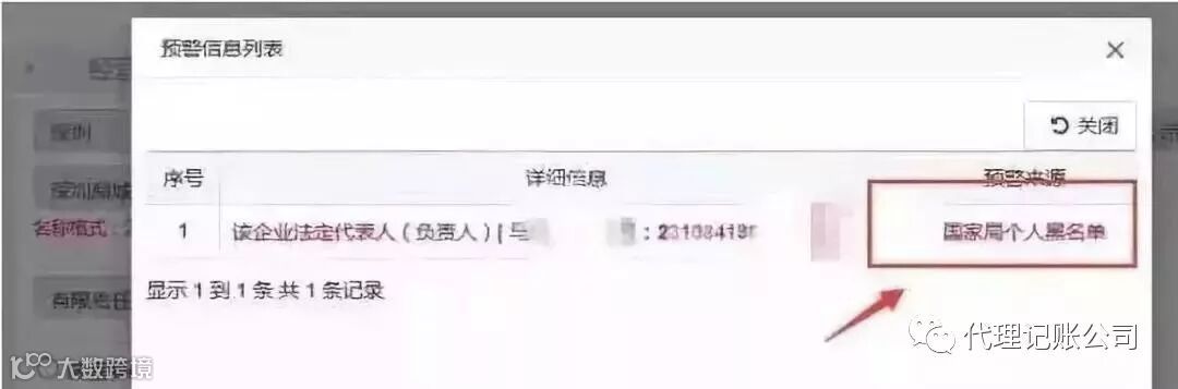 这位大哥就是个典型,注册公司的时候,填进去身份信息,直接弹出预警“国家局黑名单”!