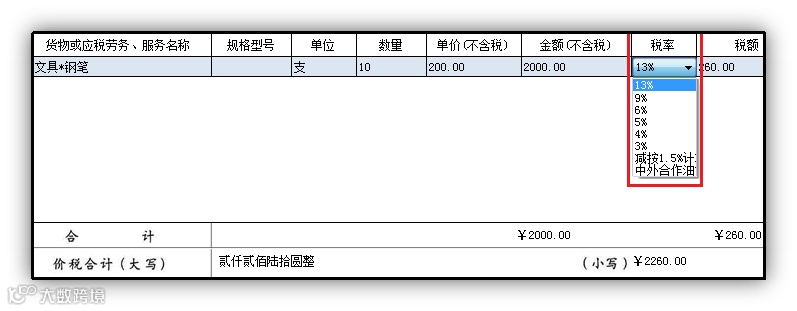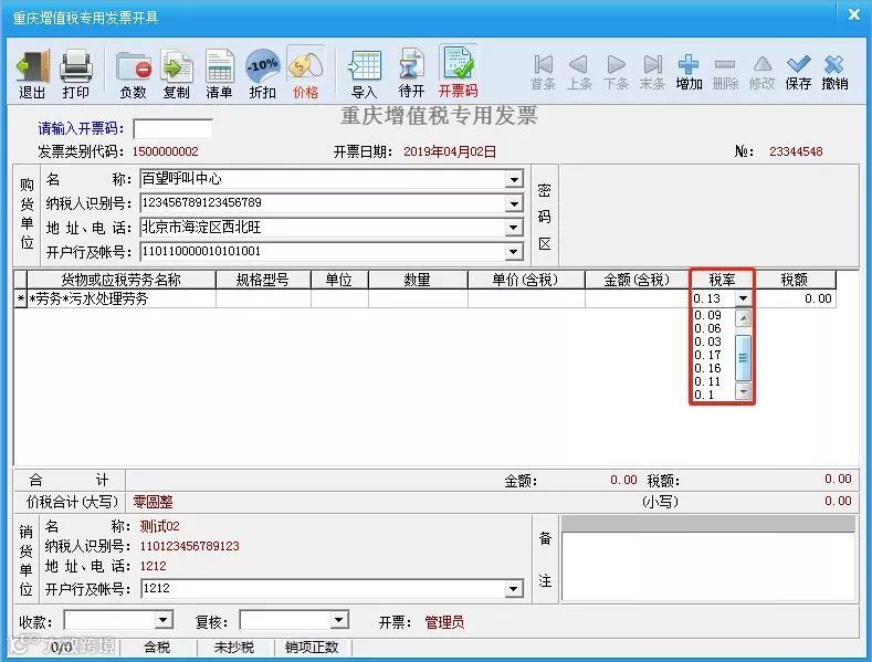 发票填开界面的税率,调整后的税率排在前面,调整前的税率依然存在。
