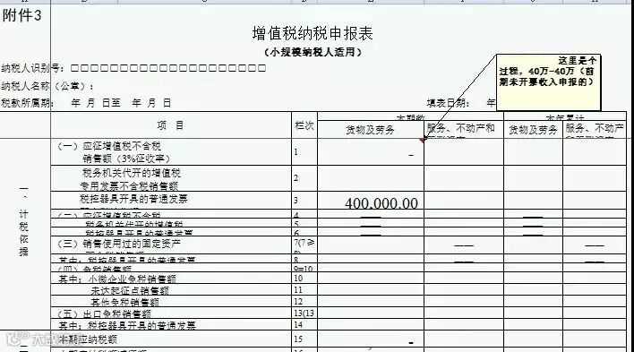 如果次月40万元均补开开具了增值税普通发票,那么申报表不需要再重复申报这个40万。