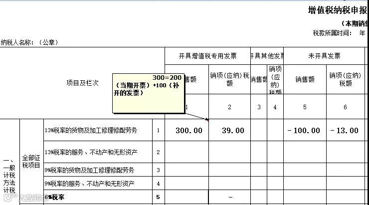 比如,上述113的未开票申报,次月又开具了专用发票。同时当期还有200的不含税开票收入,申报表第1、2列只填写当期200的数据。其实这200有个过程,相当于200(开票金额)+100(补票金额)-100(未开票收入金额)=200.