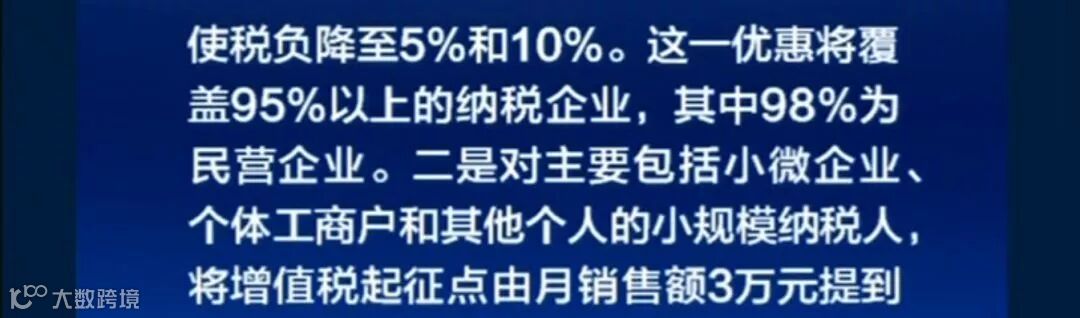 2. 对主要包括小微企业、个体工商户和其他个人的小规模纳税人,将增值税起征点由月销售额3万元提高到10万元。