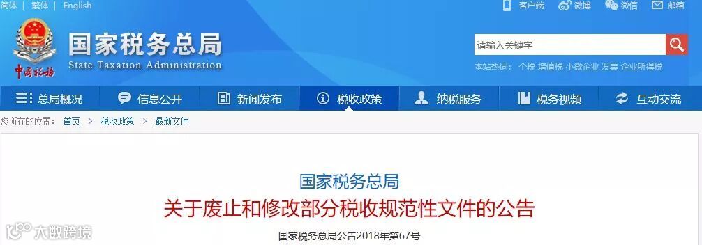 国税总局发最新政策,2废止1修改!