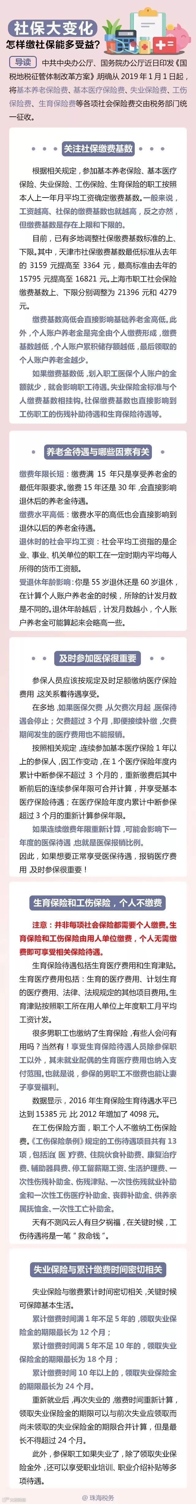 今年12月10日前要完成社会保险费和第一批非税收入征管职责划转交接工作,自2019年1月1日起由税务部门统一征收各项社会保险费和先行划转的非税收入。 社保新政策即将来临,几点内容和大家都息息相关。