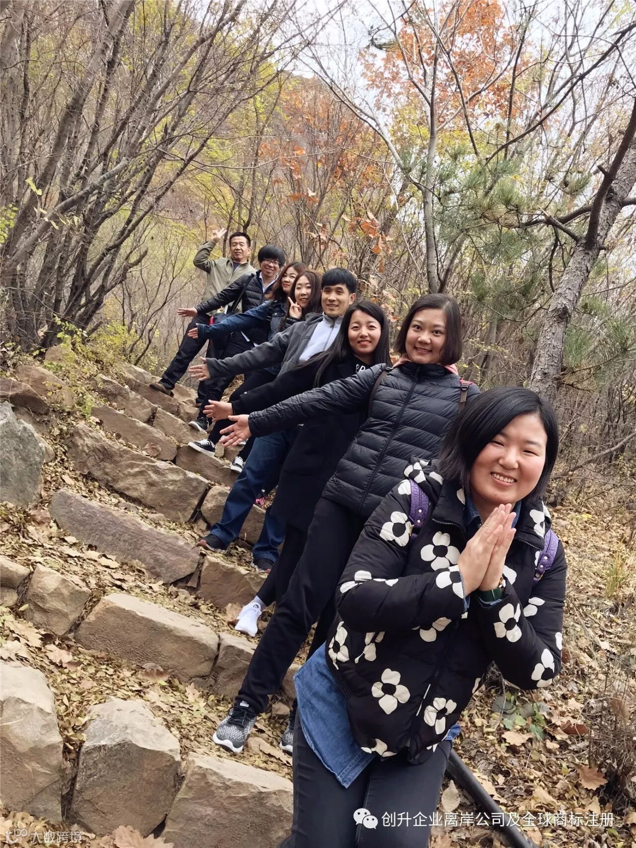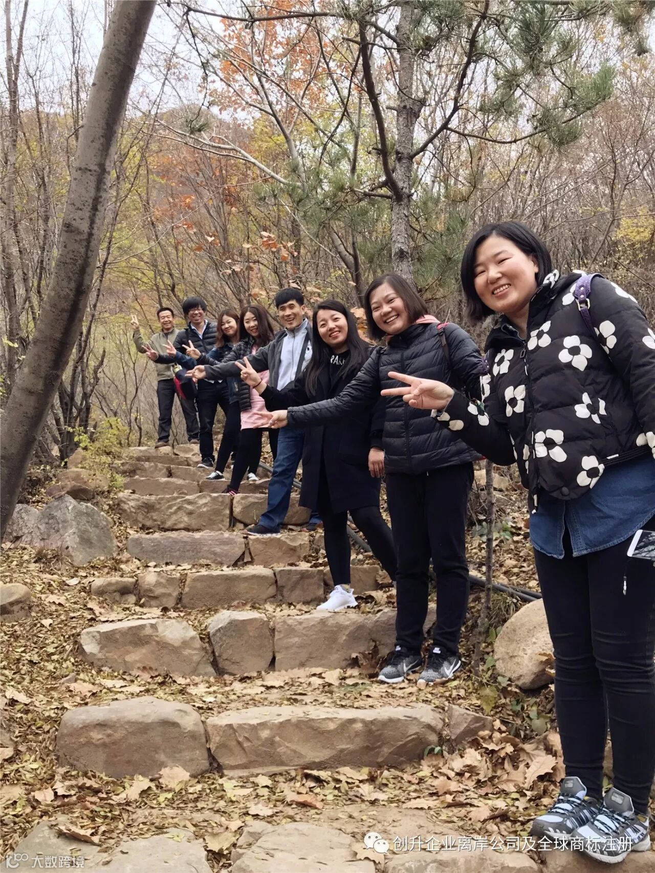 开始正式爬山,美丽的林间小路,满地金黄的树叶,吸引着我们这些办公室电脑族的眼球,忍不住与之合影。。。