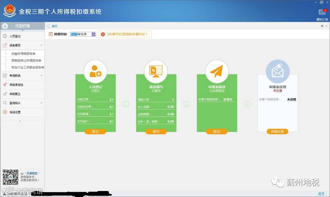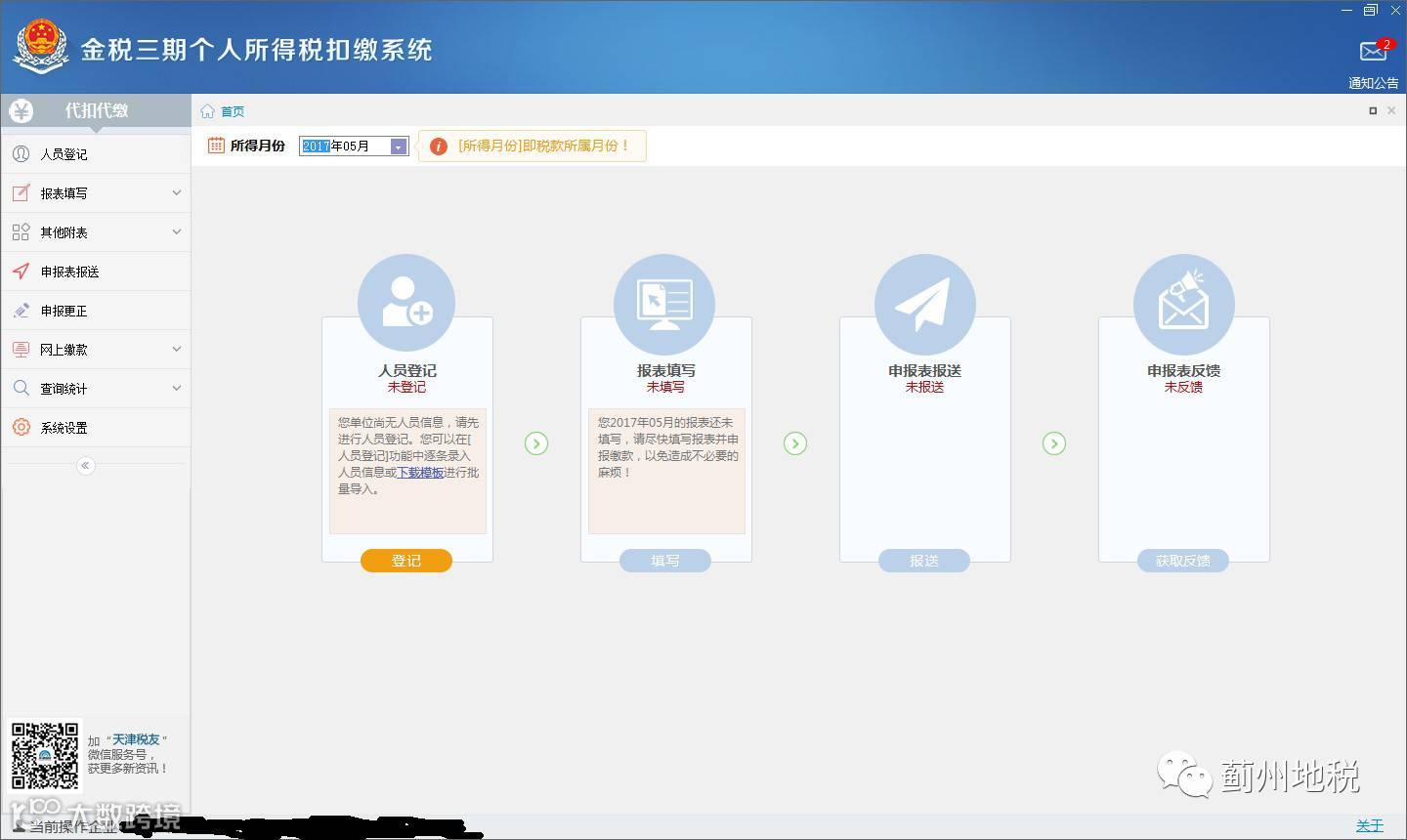 扣缴单位须在2017年7月申报个人所得税前,完成升级并使用新版金税三期个人所得税扣缴系统(2.1及其以上版本)扣缴申报个人所得税。