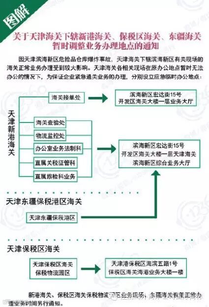 因天津滨海新区危险品仓库爆炸事故影响,为保证企业紧急通关业务的办理,现分别在开发区海关、保税区海关设立应急临时办公地点,详见下图: