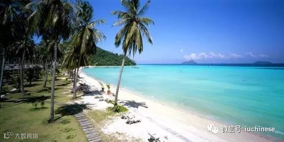 柔软洁白的沙滩,宁静碧蓝的海水