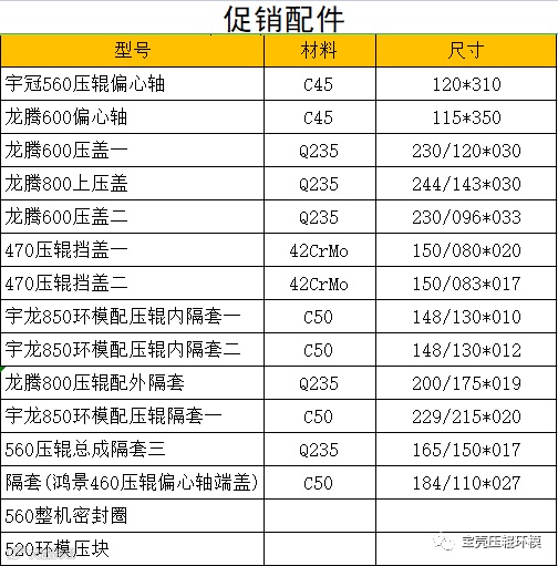 导读:宝壳模具回馈新老客户,特价清仓颗粒机配件一批,各种颗粒机环模、压辊、偏心轴、压盖等配件全部清仓处理。数量有限,有需要的朋友请私我!