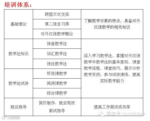 培训课程包括理论模块和教学法模块,教学法课程十分丰富并安排学员试讲。学员在学习结束之后能够基本掌握对外汉语教学各类课型、各个阶段的教学原则、方法和技巧。