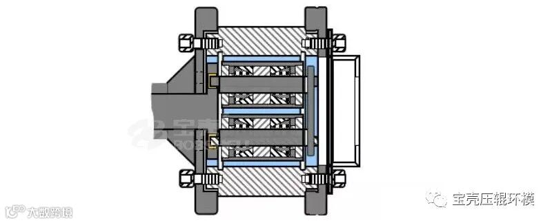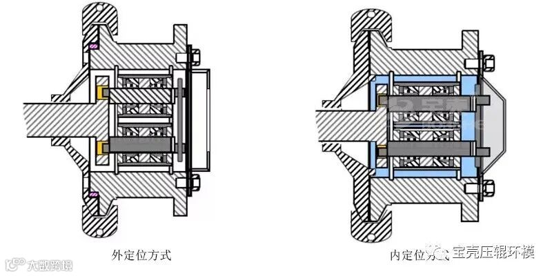 3、抱箍式。抱箍式装配,采用外定位方式或内定位方式,安装比较适用于小型号的制粒机,安装方便,需时短,缺点是环模本身不对称,不能掉面使用。