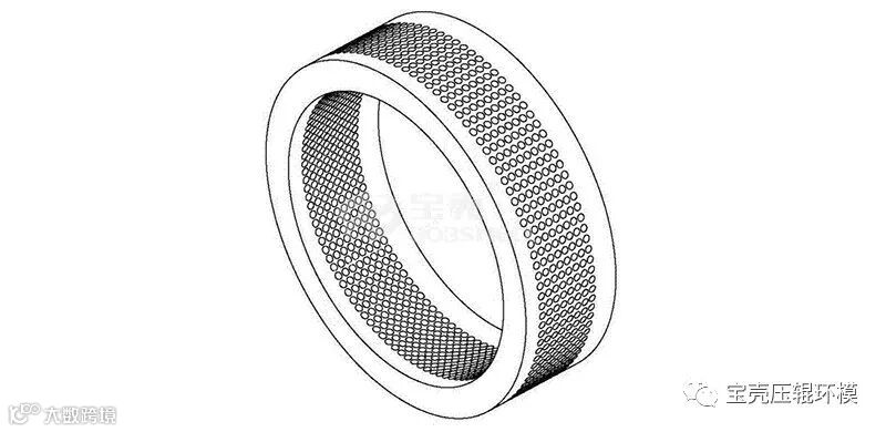 环模设计中的主要技术参数可分为动力选择参数和制造工艺参数。动力选择参数:环模和环模直径、环模转速和线速度等;制造工艺参数有:环模的压缩比、厚度、开孔率、模孔分布、模孔形状及结构、模孔粗糙度和安装形式等。