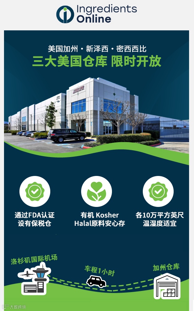 北美原料直销网Ingredients Online是北美地区领先的食品&健康原料B2B销售平台。平台总部位于美国加州,是一家专注于原料跨国电子商务的高科技互联网公司,为北美地区营养品,食品,饮料,饲料,化妆品,制药成品的企业提供原料供应等相关服务。平台拥有在北美原料分销行业20多年的行业经验、庞大的客户群、完善的物流配送和售后服务体系,在美国有3万余家营养品,食品,饮料,饲料,化妆品,制药成品生产企业客户。