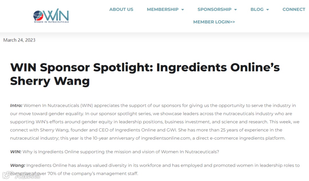 WIN:Ingredients Online 是怎么支持 Women In Nutraceuticals 的使命和愿景?