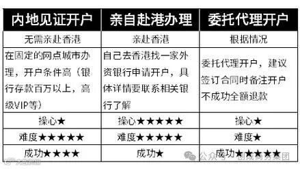 目前内地人开设香港银行账户有两种方式:一是直接预约前往香港银行柜台办理(容易被拒,建议找专业代办公司提前预约安排),二是通过内地银行见证开户。