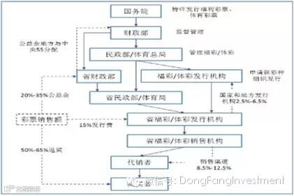 彩票销售渠道分成占彩票销售额的8.5%-12.5%。销售彩票获得的彩票资金由三部分构成:包括彩票奖金、彩票发行费和彩票公益金。彩票资金构成比例由国务院决定。根据彩种的不同,50%-65%的彩票销售金额返还给中奖者,另外20%-35%的销售金额归属于中央和地方福彩和体彩公益金以支持社会福利和体育事业的发展,剩余13%-15%的销售金额则构成发行费,其中,国家和地方发行机构抽取2.5%-6.5%的金额作为日常运营开支,剩余8.5%-12.5%作为渠道销售费用——玩法研制和管理系统分配2%-4%,对于传统渠道来说,彩票印刷和设备供应分配1%-2%,剩余10%由彩票投注站享有,对于互联网渠道来说,11%-12%的份额则有互联网彩票公司享有。根据公开信息披露,淘宝彩票能得到13%的佣金,500万能得到11%的佣金。