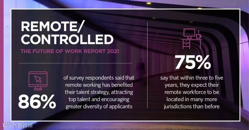 75%受访者预计将在五年内大幅增加远程工作,而80%受访者表示会使用软件来监控员工的位置。