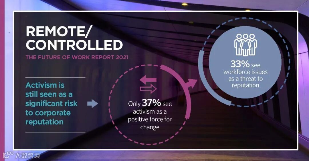疫情分散了人们对现有职场趋势的注意力,并给我们对未来的看法蒙上了一层阴影。2019年,57%受访者认为自动化和人工智能是员工行动主义活动的最重要触发因素。到2021年,这一比例降至41%,但这并不意味着自动化在行动主义方面的风险更小。