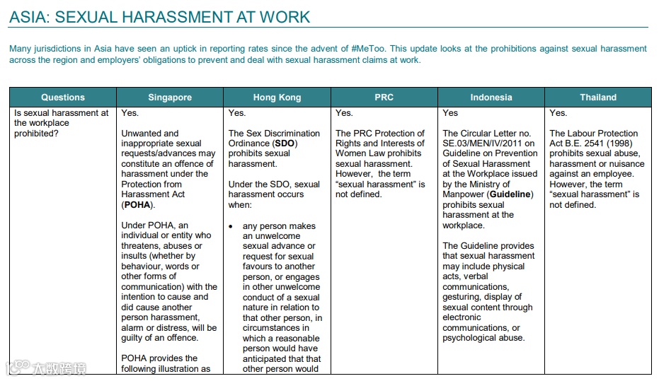 虽然中国的工作场所性骚扰的法律并不发达,但这次,《中华人民共和国民法典》(以下简称《民法典》)的条文规定了单位具有预防和制止性骚扰的强制性义务。本文简介了主要义务。