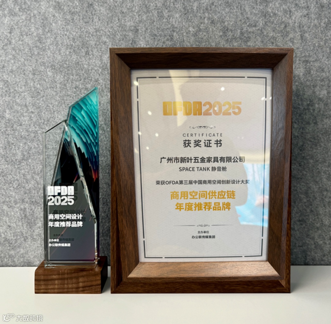 新叶五金获商用空间设计+商业空间供应链年度推荐品牌