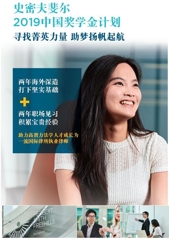 相对于其他毕业后出国学习和就业的机会,史密夫斐尔中国奖学金计划提供了中国市场上绝无仅有的国际律师职业成长路径,结合了系统深入的英国法学习、多执业领域的尝试与探索、强大的职业发展支持和业务选择的灵活性。史密夫斐尔在亚太地区的业务版图和多个领域内的领先地位也为执业初期的年轻律师提供了绝佳的成长平台。