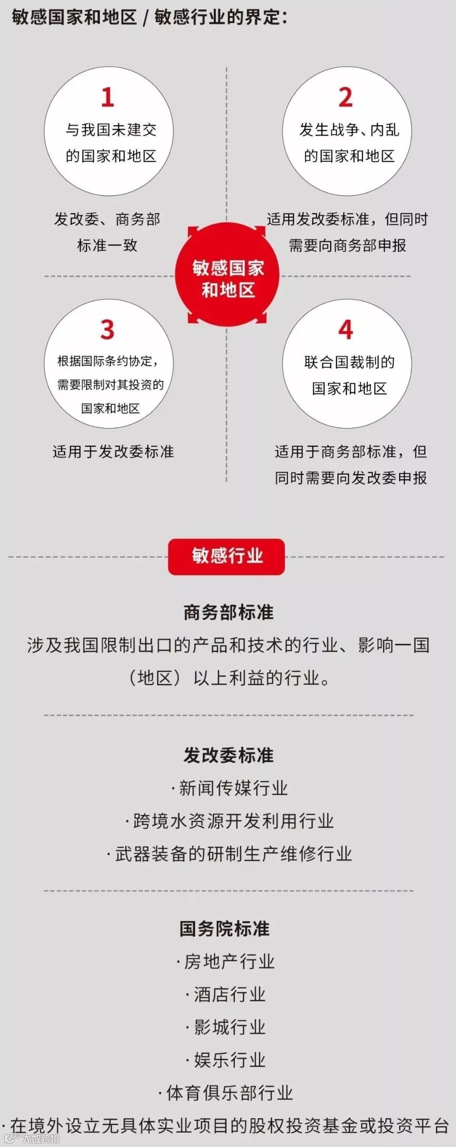 注意主管部门对敏感国家和地区、敏感行业的区别: