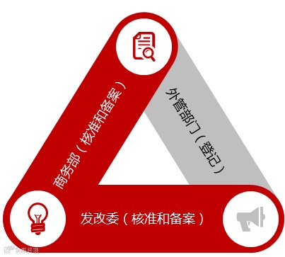 中国企业进行境外投资,主要需要取得三个主管部门的核准、备案或登记,包括国家发展和改革委员会或地方发展和改革委员会的核准或备案、商务部或地方商务部门的核准或备案、以及国家外汇管理局地方分局(所在地银行直接办理,地方外管局通过银行实施间接监管)的外汇登记程序。
